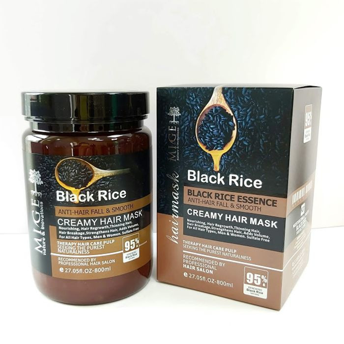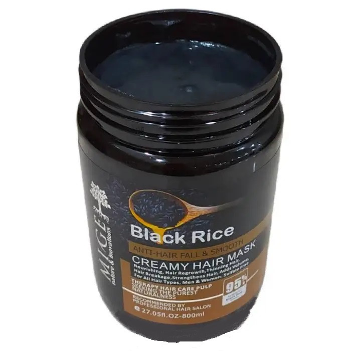 فرمولاسیون ماسک مو نرم کننده و ضد ریزش میگ عصاره برنج سیاه کاملا ارگانیک و گیاهی میباشد.