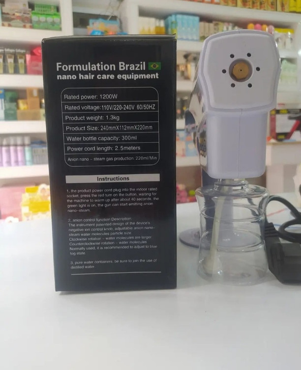 نانواستیم، نانو هیدروژن، یا نانو اسپری دستگاهی شبیه به تفنگ است که با سیستم پرتاب فشاری، نانو ذرات آب را به صورت بخار روی مو می پاشد. دستگاه دارای یک مخزن آب است. این مخزن با آب جوشیده سرد شده یا آب مقطر پر می شود و تحت فشار ۳/۳ اتمسفر تک مولکول های آب را به قطر ۰/۲۶ نانومتر تبدیل میکند. تفنگ نانو استیم از یک رادیاتور، تنظیم کننده اسپری، مخزن آب، نور مادون قرمز و فرابنفش، چراغ، و دکمه روشن و خاموش تشکیل شده است. جنس بدنه آن بسیار محکم و مقاوم در برابر فشار و دمای بالا است. دو نوع کابلی و شارژی این محصول در بازار موجود است که با توجه به نیاز خود می توانید یکی از آن ها را تهیه کنید.
