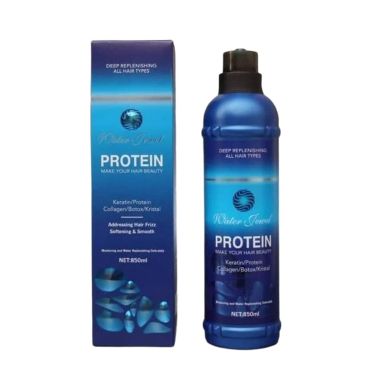 پروتئین واترجول Water Jewel به رشد مو، آبرسانی مو، درمان وزی و ابریشمی کردن مو کمک می کند و از ترکیباتی چون ویتامین های E،D،B1،B2، روغن آرگان، روغن آووکادو، روغن بادام، روغن هسته هلو، کراتین و روغن نارگیل تشکیل شده است. پروتئین مو Water Jewel حاوی کلاژن و بوتاکس حجم 850 میل با رنگدانه هایی که دارد از زرد شدن موهای طبیعی بور و روشن یا موهای رنگ شده جلوگیری می کند و درواقع زردی مو را از بین میبرد.